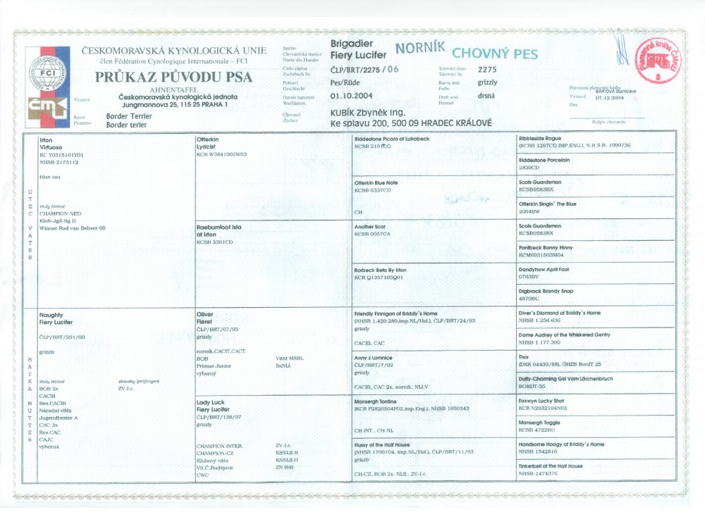 Chovatel: Zbyněk Kubík, Ke splavu 200, 500 09 Hradec Králové